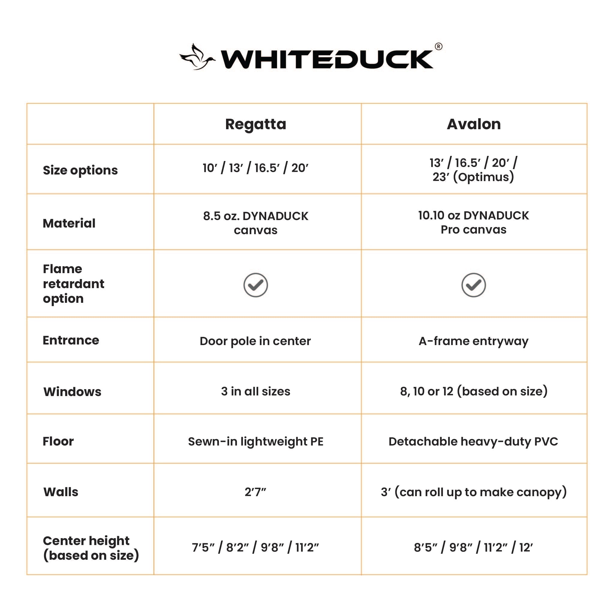 - DYNADUCK fabric, with 8.5 oz army duck cotton canvas and a water repellent, mold & UV resistant finish
