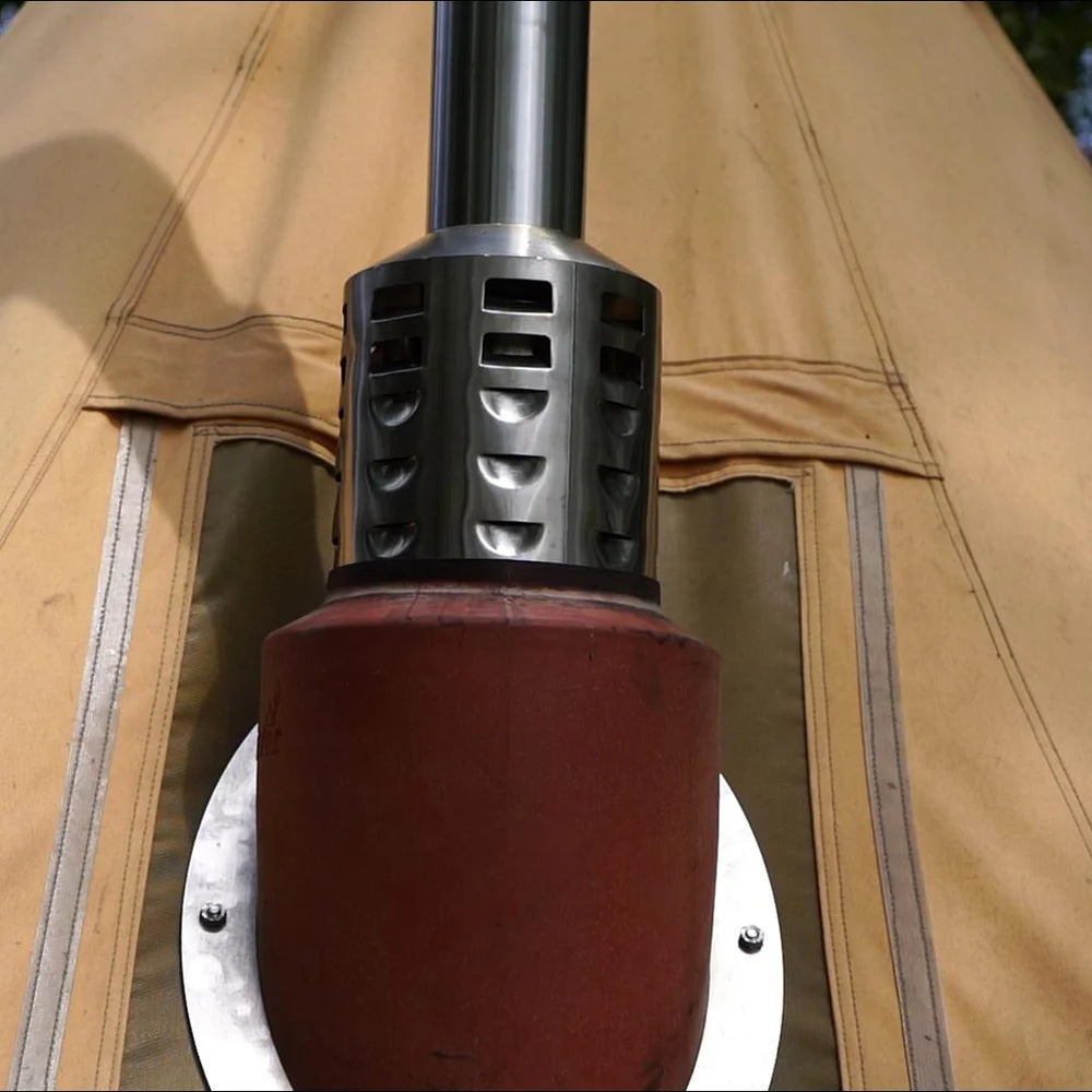 The Winnerwell® Triple-wall Heat Protector Chimney is strongly recommended for use where the chimney pipe exits the stove jack in your tent or shelter. Compatible with the Winnerwell® Woodlander and Nomad External Air M-sized Stoves, its triple-wall design ensures the hot flue pipe does not come into direct contact with the stove jack exit point, reducing the risk of fire or heat damage to your shelter. The exterior diameter is 150mm / 5.9 inches, perfectly fitting the Winnerwell® Silicone Flashing Kit (SKU 910452).